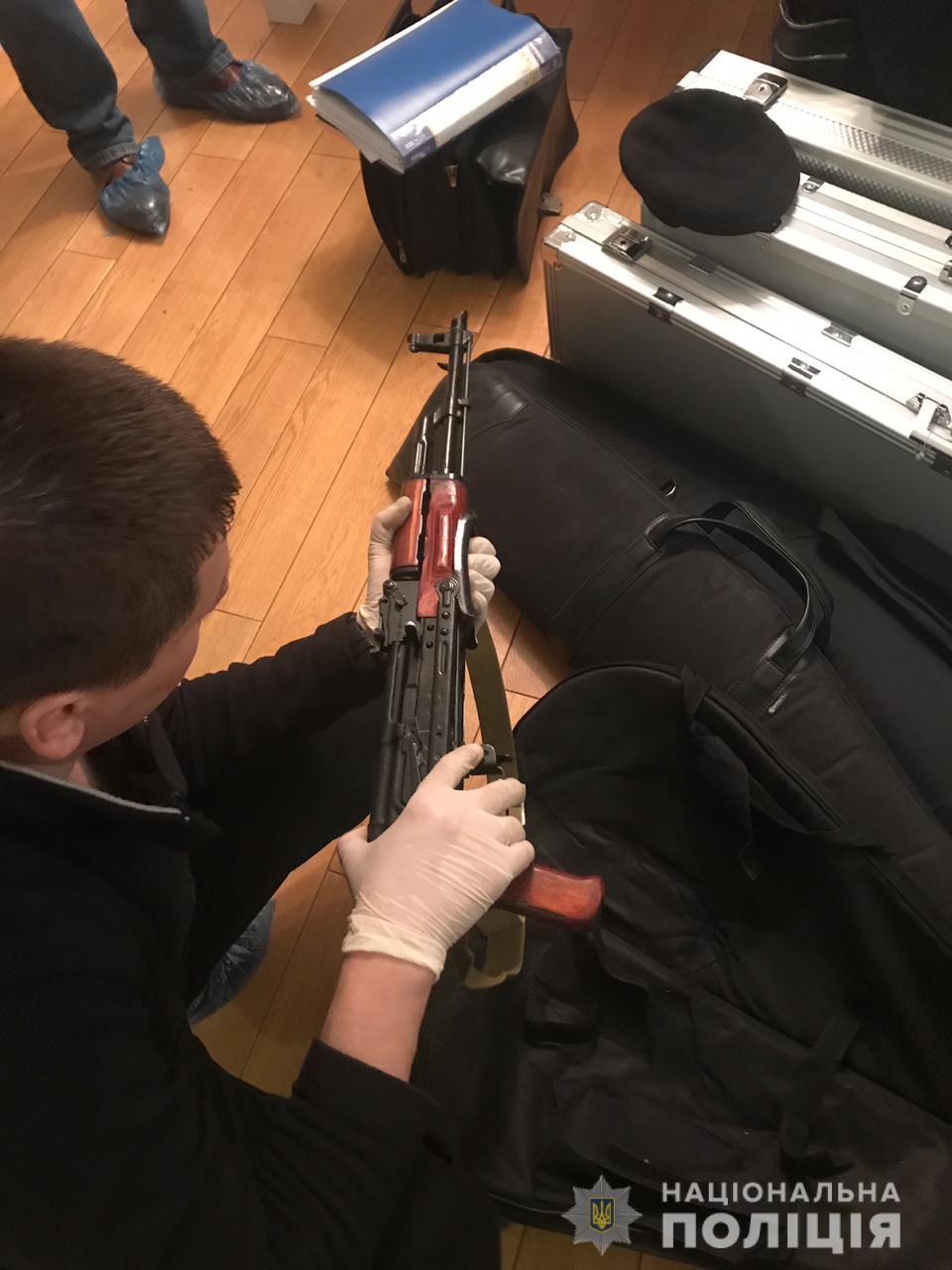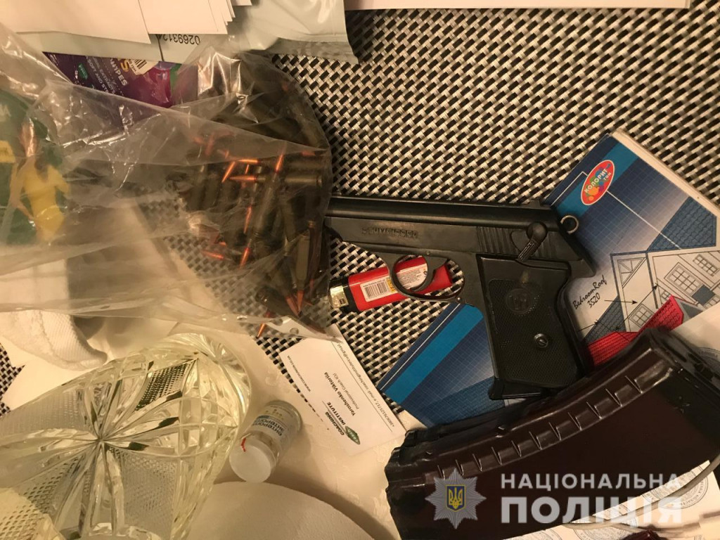 Сообщается, что во время проведения санкционированного обыска по месту жительства старшего фигуранта правоохранители обнаружили и изъяли почти 300 тыс. гривен, различную валюту, мобильный телефон, пистолет ТТ, большое количество патронов различного калибра, три нарезных карабина, магазины, глушитель, 2 предмета, похожих на автоматы “Калашникова”, охотничье ружье, травматический пистолет.