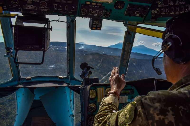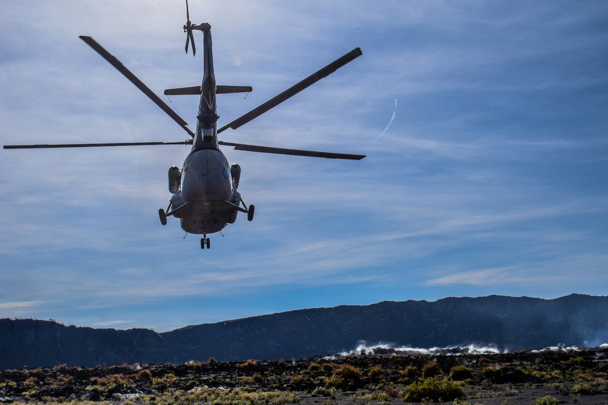 Группу ученых на вулкан (высота над уровнем моря превышает три тысячи метров) доставил экипаж под руководством командира отряда летчика-снайпера полковника Виталия Цапко. Пока вулканологи работали, а экипаж находился в городе Гома, погода испортилась, но украинским военным удалось пробиться сквозь «окно» в облаках и успешно эвакуировать группу.