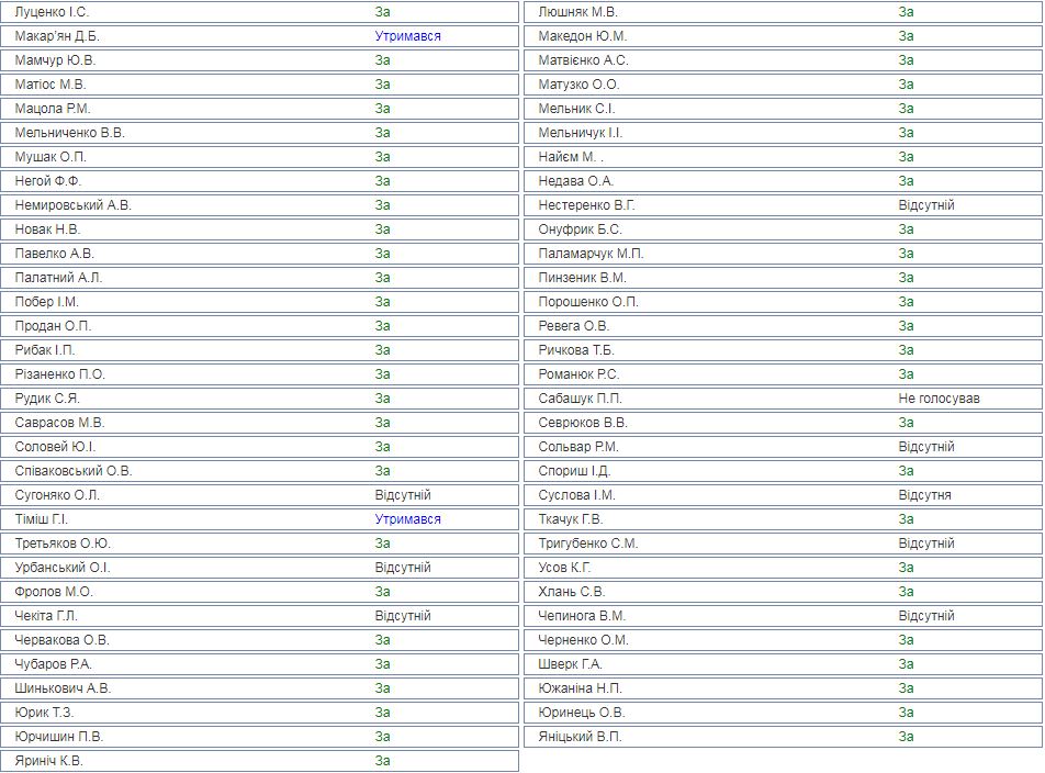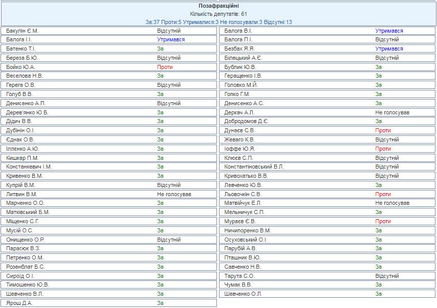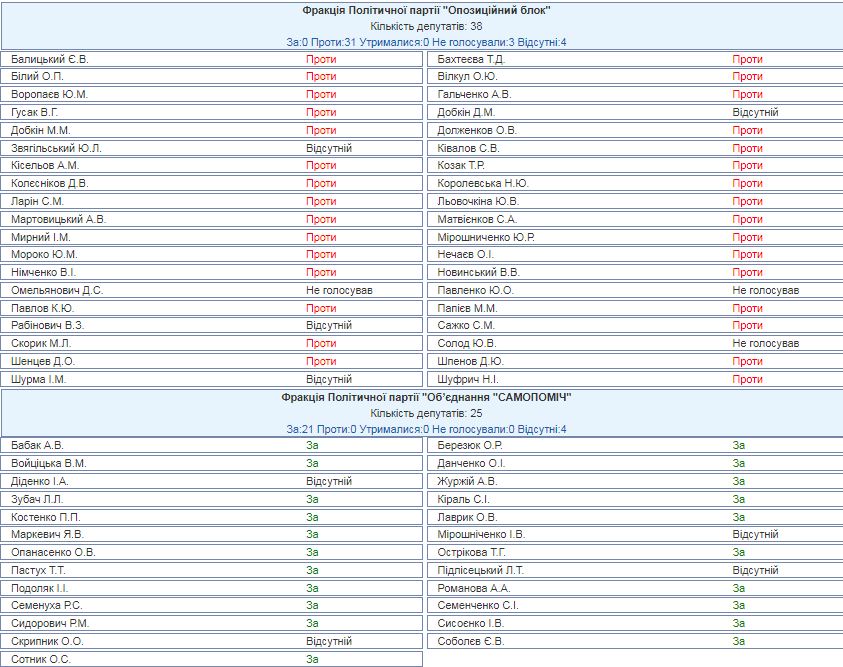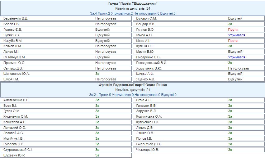 Так, против закона в основном проголосовал Оппозиционный блок, а также ряд народных депутатов от «Видродження» и внефракционных парламентариев.