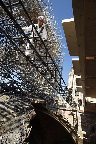 Появились фото, как реставраторы восстанавливают Нотр-Дам после жуткого пожара