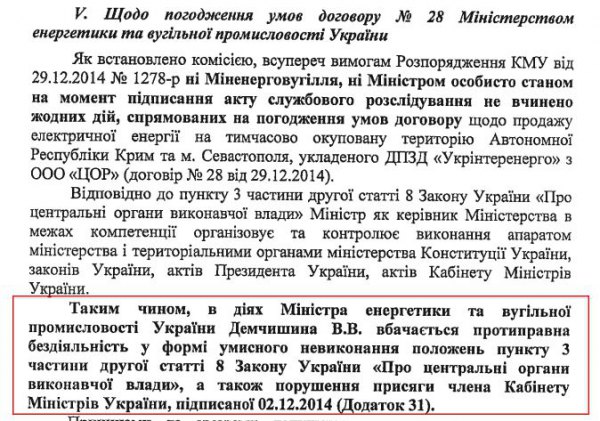 Рассмотрев его результаты на заседании Правительства, премьер рекомендовал Демчишину изучить вопрос об освобождении от занимаемой должности одного из подписантов скандальных документов, а именно ... заместителя директора «Укринтерэнерго» В. Андриенко. То есть на всю историю о предательских контрактах нашелся только один виновный, да и тот остался безнаказанным.