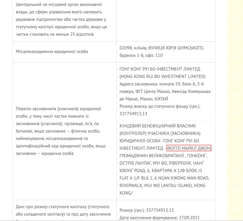 Призначення у гонконгських компаніях містера Фогго дивним чином збіглося з періодом зміни власників в “УНЛ”, що дає підстави вважати, що Фогго є формальним директором та виконує роль обличчя компанії з метою приховання справжніх кінцевих бенефіціарів.