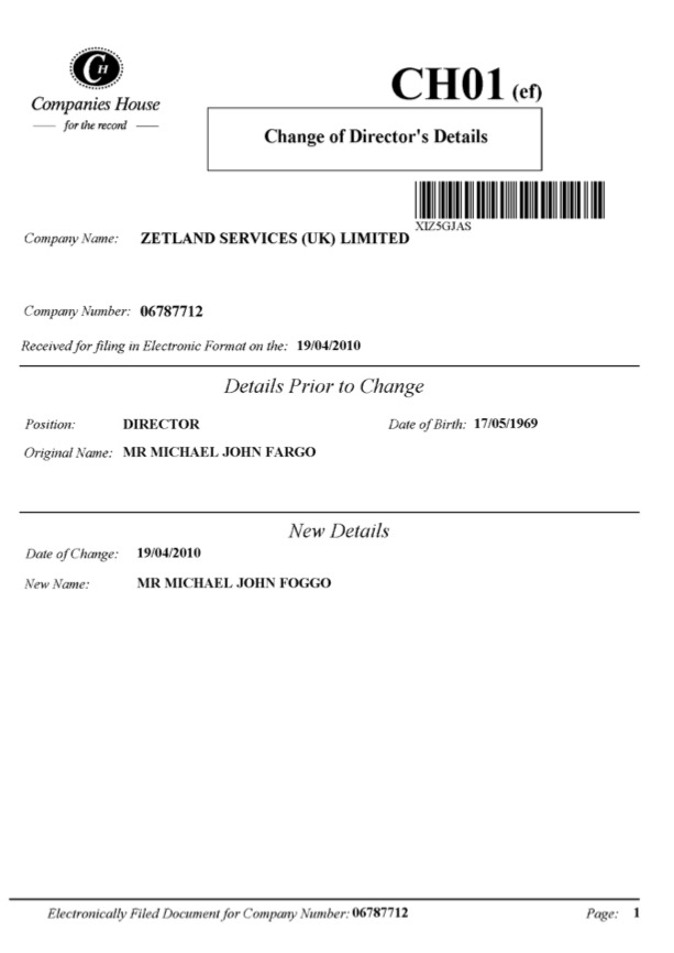 З 09.01.2009 року по 07.03.2011 роки пан Фогго працював у компанії ZETLAND SERVICES (UK) LIMITED. Крім того цікаво те, що починав він як пан Фарго, а потім змінив прізвище на Фогго.