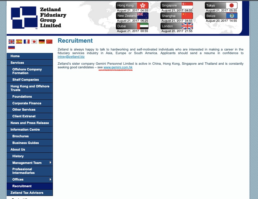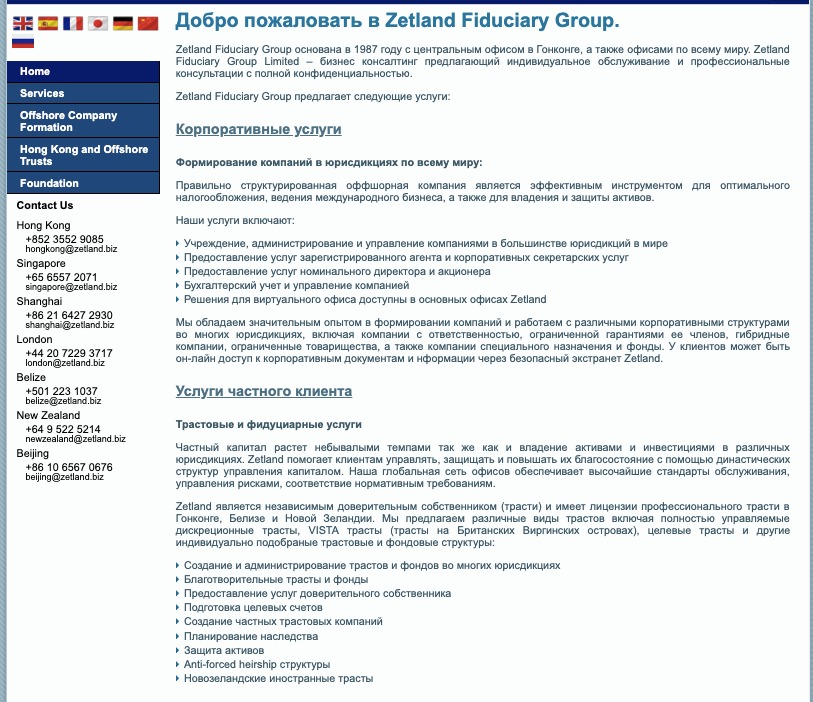 Наразі сайт компанії не працює. Проте дочірня компанія ZETLAND SERVICES (UK) LIMITED і досі працює.