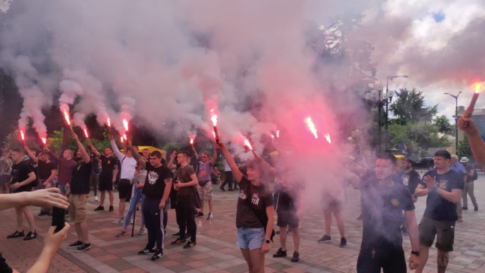 Добровольці святкують прийняття закону біля стін Верховної Ради