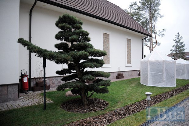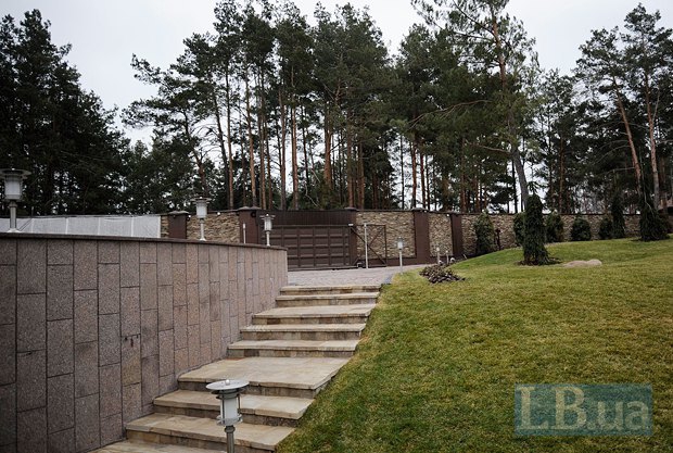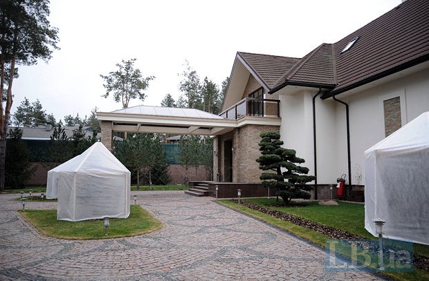 Журналистов пустили на территорию дома экс-министра внутренних дел Виталия Захарченко. Дом расположен в селе Подгорцы приблизительно в 27 километрах от Киева. На территории, кроме основного дома, расположены гараж, дом для охраны, теннисный корт. Также недалеко от имения находится вертолетная площадка и ангар для вертолетов.  Территория имения ухоженная, возле домов много деревьев, есть даже небольшое искусственное озеро. Внутрь дома журналистам попасть не удалось.