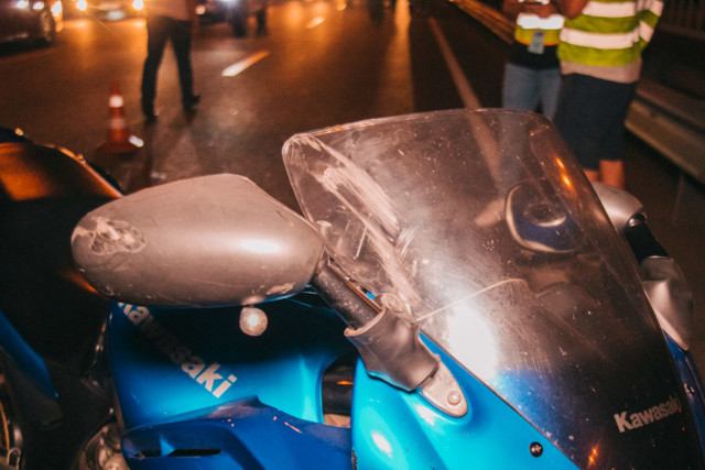 Авария произошла 23 июня в около 21:10 на проспекте Победы, вблизи станции метро “Житомирская”. Предварительно, и Kawasaki, и Hyundai двигались в попутном направлении в сторону центра. Легковушка ехала в крайней левой полосе, а мотоцикл – в средней. Внезапно мотоциклист резко начал перестраиваться в левый ряд и во время маневра зацепил легковушку.