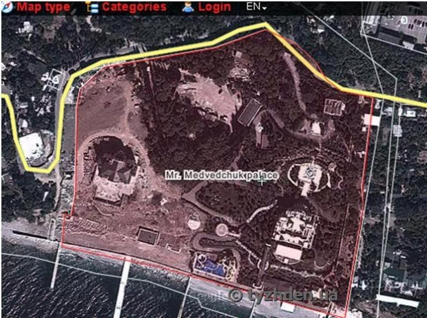 Этот дом кума Путина построено на территории детского санатория в крымском Симеизе. А на некоторых картах поисковой системы земельный участок площадью 6,7 гектара так и обозначена: «дворец Медведчука».