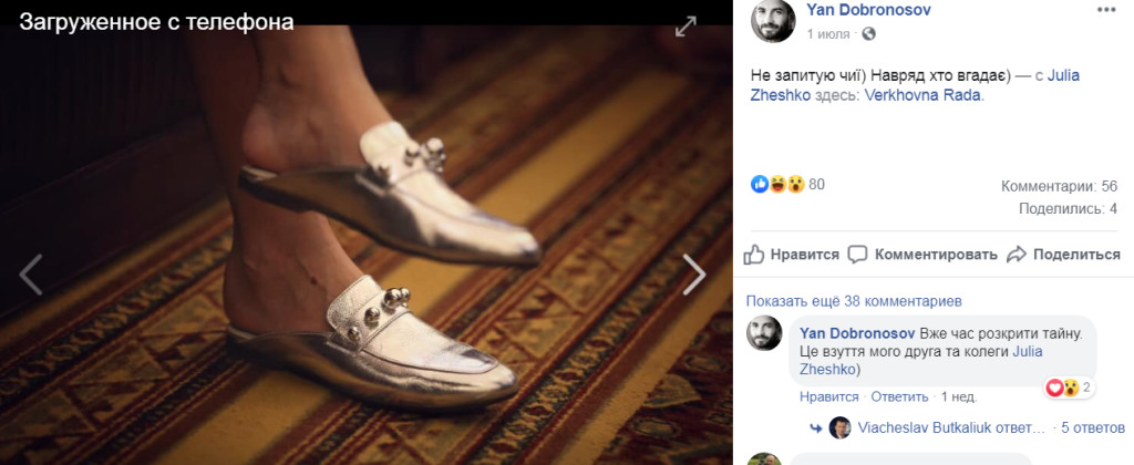Чтобы развлечь читателей новостями из Рады, Ян публикует фото обуви пребывающих в зале и просит читателей угадать, чьи это тапки.