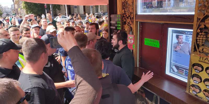 Як повідомив кореспондент ІНФОРМАТОРа з місця подій, не обійшлося без сутичок. Представник кавказької національності намагався пролізти без черги до каси кіоску з кавою, продавець кіоску, яка як раз робила каву клієнту, та активісти, зробили йому зауваження. Стався невеликий конфлікт, бо чоловік виявився борцем та вдарив націоналіста. Зараз останньому надають допомогу представники “Червоного хреста”, у нього діагностовано розсічення шкіри на обличчі. Протестувальники мали намір помститися за образу, але поліція затримала чоловіка та вивела його за межі місця проведення акції. Незабаром поліція відпустила борця. Конфлікт виявився особистісним і до акції протесту не має жодного відношення.