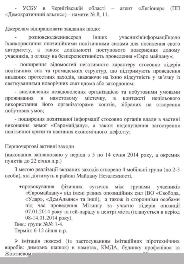 Якщо ж нове керівництво СБУ не розкриє своїх сексотів, залишаю за собою право опублікувати списки агентів із прізвищами та іншими даними сам. Маю моральне право зробити це з тієї причини, що подібна діяльність спецслужби є незаконною й неконституційною. СБУ має право на агентуру для контррозвідки, а не для боротьби з опозицією та інакомисленням. Нижче надаю план із нейтралізації Євромайдану з роз’ясненнями. Хай українці самі оцінять професіоналів із сьогоднішніх спецслужб. І хай теперішня влада, що теж покладає сподівання на СБУ, не плекає марних надій.