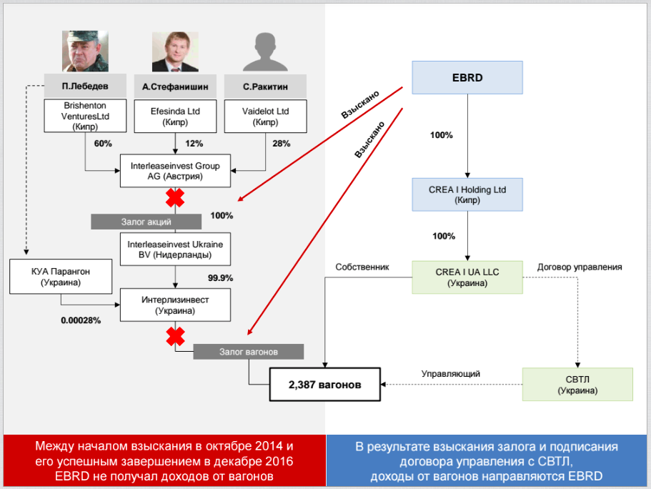 Два года назад Европейский банк реконструкции и развития заявил, что Лебедев и Стефанишин причастны к попытке рейдернуть у ЕБРР компанию с парком в 2,4 тыс. грузовых ж/д вагонов.