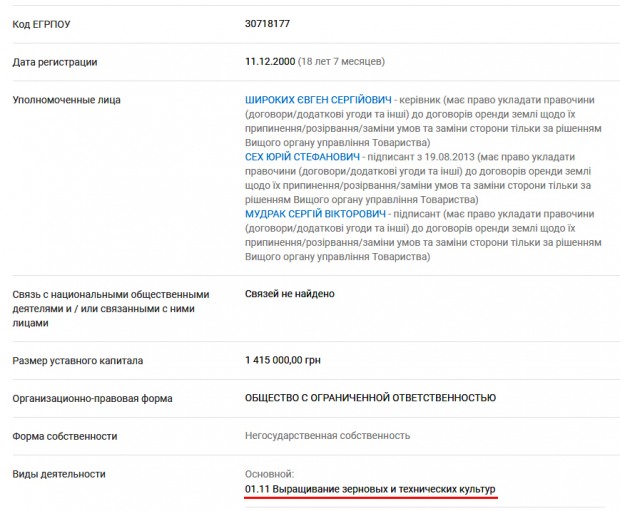 Здесь уже речь идет не о полутора, а о десятках миллионов гривен, и среди 11-ти их получателей – «ТОВ «Любимівка» (ЄДРПОУ 30718177)».