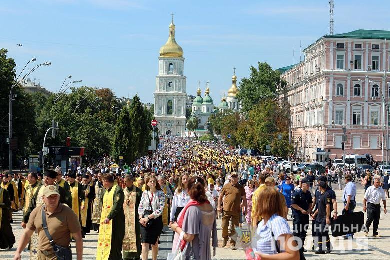 По данным полиции Киева, около 15 тысяч прихожан Православной церкви Украины прошли крестным ходом по центру столицы. Верующие прошли колонной от Софиевской площади до Владимирской горки, где начался молебен.