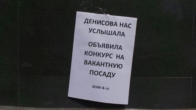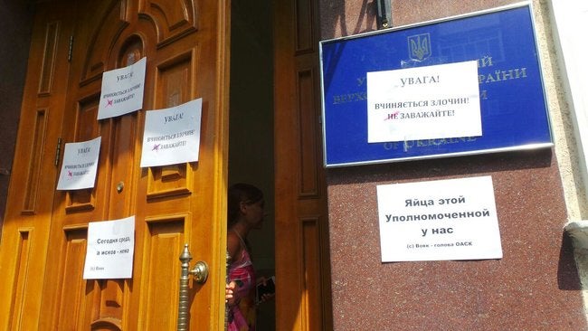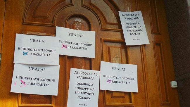 К Офису омбудсмена в Киеве пришли активисты инициативы «Декларация неравнодушных» и Фонд DEJURE. Они устроили акцию протеста под названием «Стоп Волчье правосудия» и повторили свои требования к Денисовой.