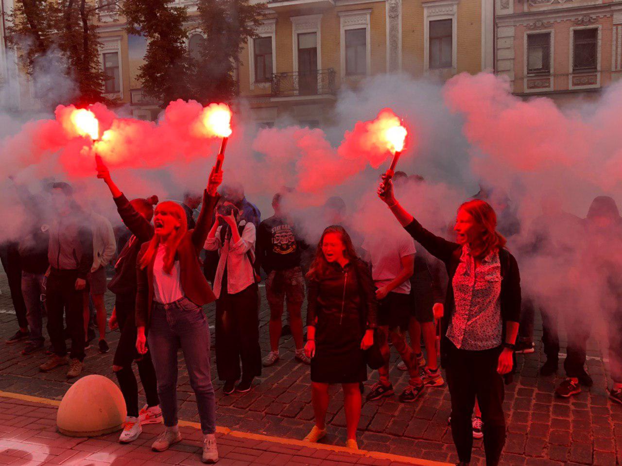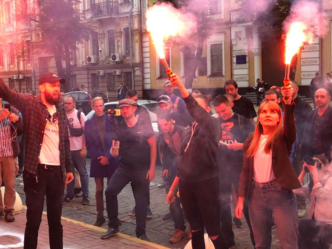 Вони палили фаєри та написали на підлозі під главком СБУ імена фігурантів справи, а також тимчасово виконуючого глави служби Івана Баканова.