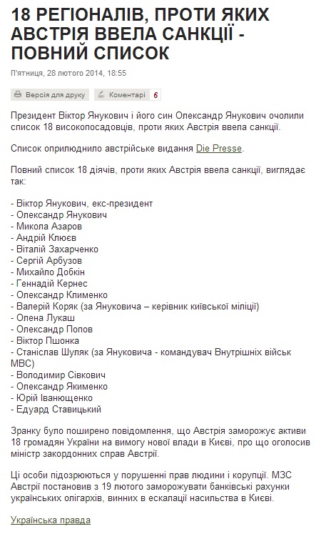 Перечисленные в нем люди имели непосредственное отношение к кровавому уничтожению мирных людей на Майдане, либо находились в непосредственной близости к кровавому тирану Виктору Януковичу.
