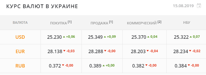 В четверг, 15 августа, курс доллара опустился сразу на 8 копеек, а межбанк закрылся в рамках 25,165-25,23 грн/$.