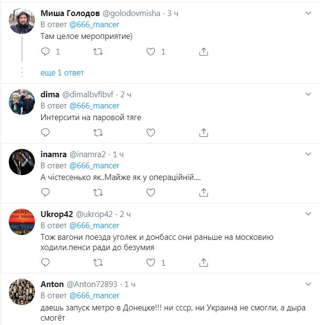 «19/08/19. Запуск межпланетного поезда «Донецк-Еленовка», — комментирует событие блогер Necro Mancer, опубликовавший в Twitter фото с железнодорожного вокзала оккупированного города. На (заглавном) фото видно, что состав из нескольких вагонов тянет тепловоз ЧМЭЗ, который был создан в 60−80 годах прошлого века в несуществующей ныне Чехословакии.