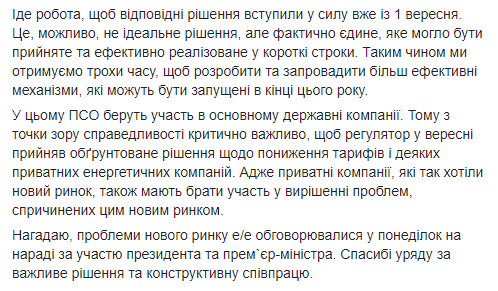 Он сообщил, что Кабмин на заседании в среду, 21 августа, принял постановление о спецобязательствах на новом рынке электроэнергии. Благодаря этому можно будет снизить цену на электричество для населения.