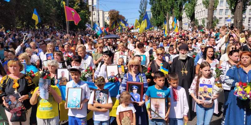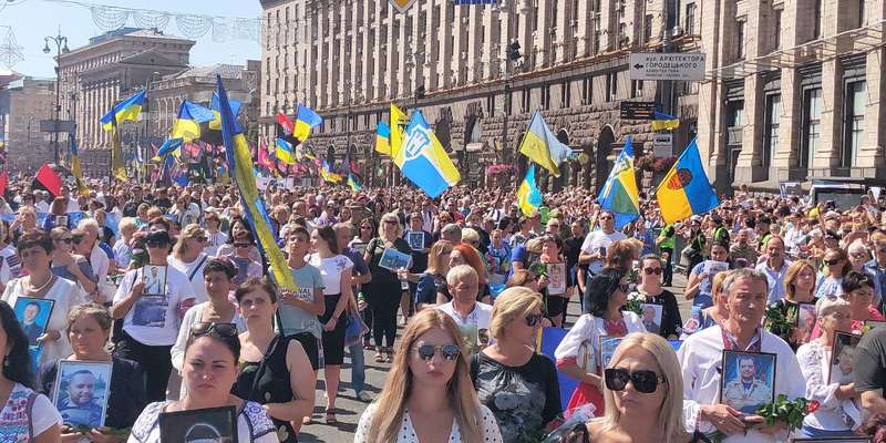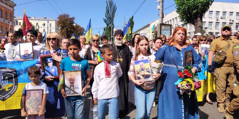 Наразі учасники прямують до Михайлівського собору, де відбудеться міжконфесійний молебень за загиблими.