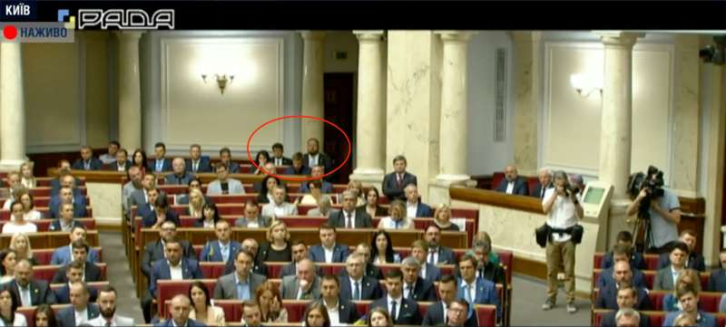 На скриншотах видео первого заседания нового состава Верховной Рады видно, что именно Разумкову и Стефанчику достались столь обсуждаемые в сети места в зале парламента.
