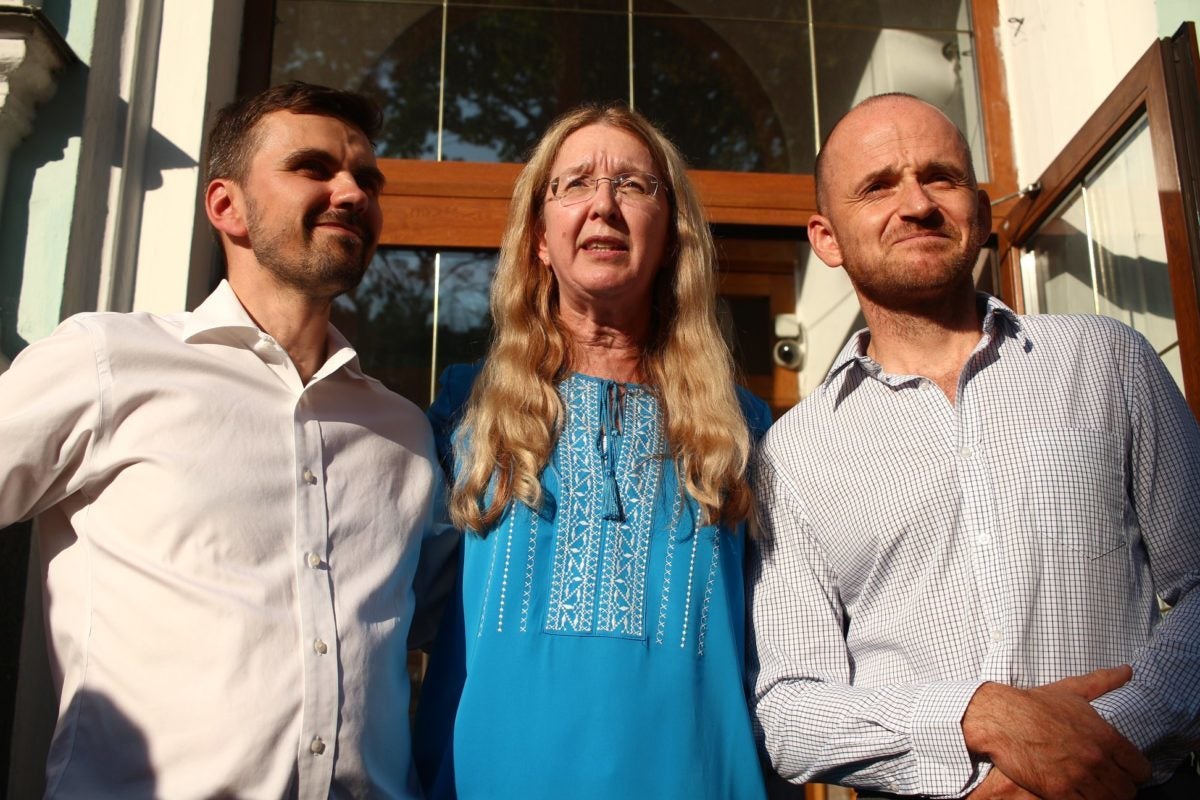 Супрун со своими заместителями вышла к людям, ее встретили продолжительными аплодисментами и криками «Спасибо».