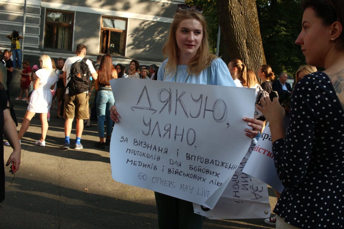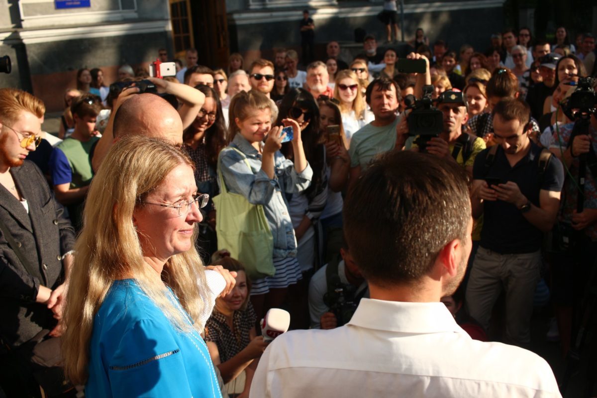 В пятницу, 30 августа, возле здания Министерства здравоохранения собралось около двухсот человек, чтобы поблагодарить Ульяну Супрун за ее работу в должности и.о. министра.