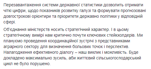 Также новоиспеченный министр планирует встретиться с представителями аграрного сектора, чтобы "определить болевые точки и перспективы".