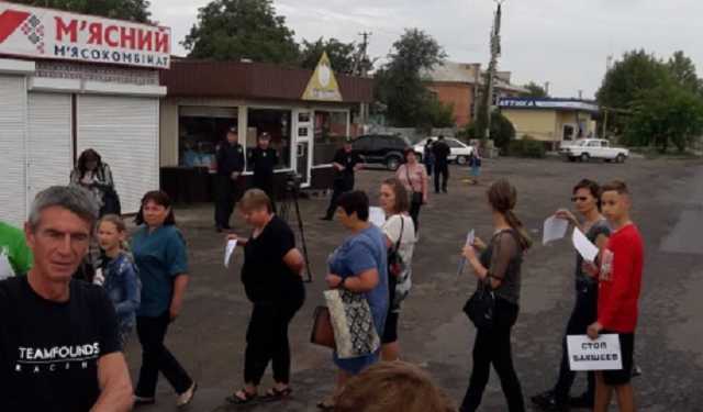 В городе Первомайском Харьковской области учителя протестуют против закрытия двух местных школ.