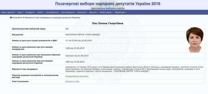 · жена делового партнёра Павлюка - Игоря Лиса, учительница Елена Лис, округ №201;