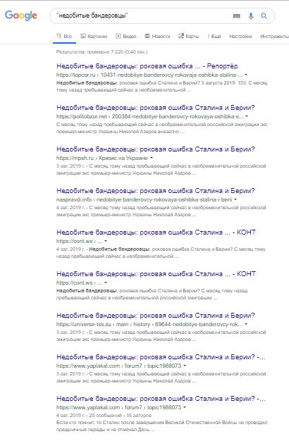 Ранее, 6 августа, на одном из сайтов из этого списка в рубрике “Аналитика” появилась публикация под названием “Недобитые бандеровцы: роковая ошибка Сталина и Берии?”