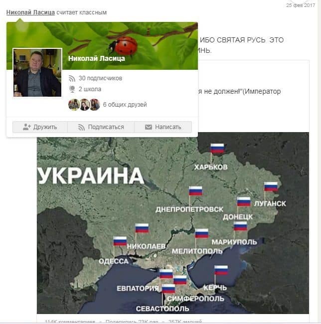 "Учитель в запрещенной социальной сети постил сообщения антиукраинского характера. Начиная с главаря "ДНР" Захарченко и заканчивая тем, что Одесса – это Россия, в сопровождении запрещенной георгиевской ленты. Учителя уволили из школы, ведь недопустимо, чтобы человек с такими взглядами работала в сфере образования", – добавил Ганул.