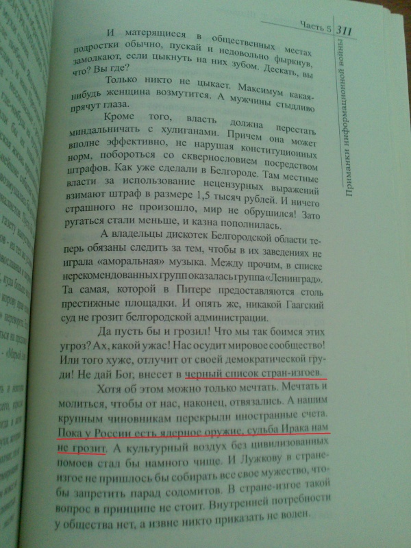 "… Пока у России есть ядерное оружие, судьба Ирака нам не грозит. …Что же еще ждет бедную Украину? Во всяком случае, ясно, что ничего хорошего".