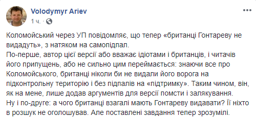 Сгоревший дом сбежавшей в Великобританию экс-главы НБУ вызвал просто цунами постов в украинском сегменте Facebook. Одни утверждают, что поджег – дело рук олигарха Игоря Коломойского, у которого с Гонтаревой давний конфликт на почве национализации “ПриватБанка”. Другие же считают: события последних дней говорят о том, что это дело рук самой Гонтаревой, которая таким образом попытается получить политическое убежище в Великобритании (якобы из-за опасности пребывания в Украине, – ред.) и избежать уголовных дел против неё.
