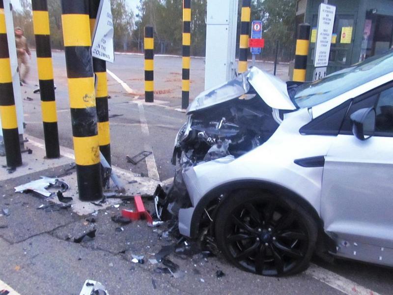 На украинско-белорусской границе в международном автомобильном пункте пропуска «Славутич» (Черниговская область) автомобиль Ford, пытаясь проскочить через границу не останавливаясь, столкнулся с элементами пограничной инфраструктуры.