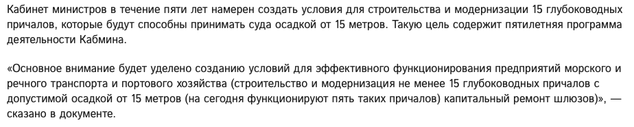 А к чему приведет в действительности последняя инициатива нового Премьера “15 причалов по 15 метров глубины”?