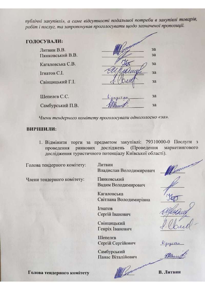"Проведення маркетингового дослідження туристичного потенціалу Київської області" стоимостью 1млн гривен;