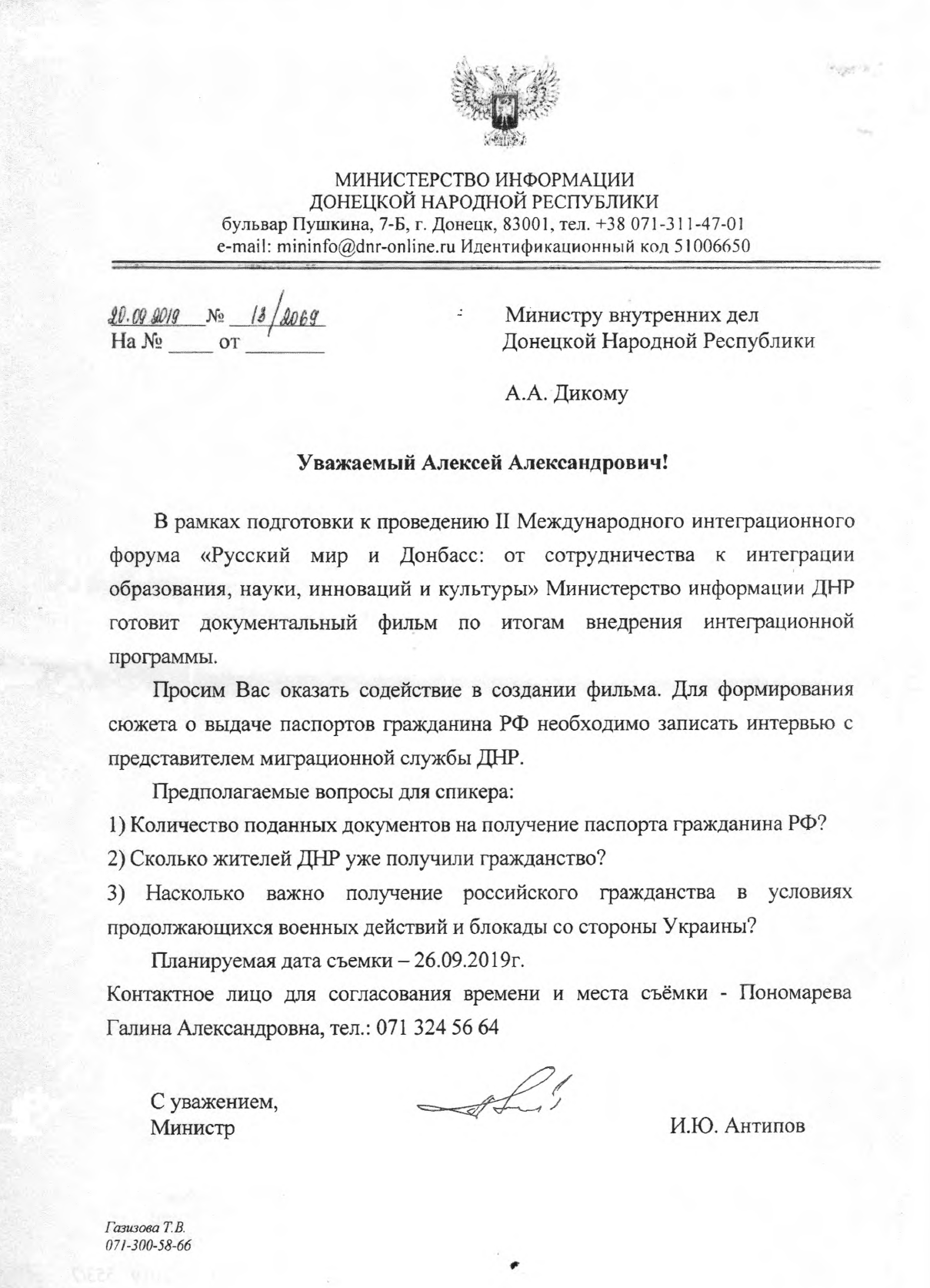 Просьбу об оказании в содействии при съемках пропагандистского ролика о выдаче паспортов рф.