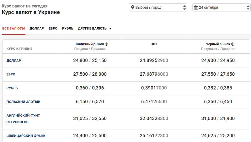 В четверг, 24 октября, Нацбанк Украины повысил курс национальной валюты по отношению к доллару. Об этом свидетельствует информация на сайте регулятора.