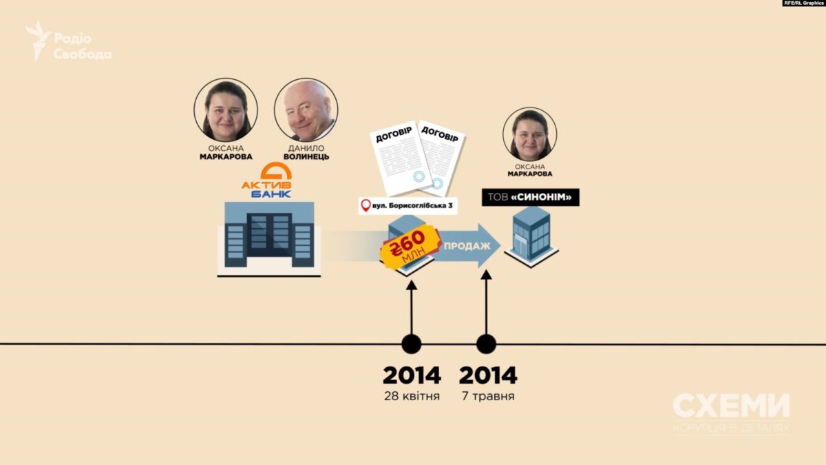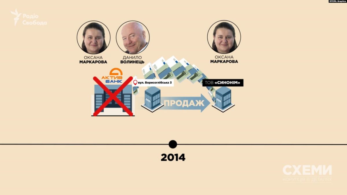 Министр финансов Оксана Маркарова вывела из собственности «Актив-банка» дом в центре киевского Подола площадью 4,5 тысячи кв. м незадолго до ликвидации. Об этом говорится в сюжете программы «Схемы. Коррупция в деталях».