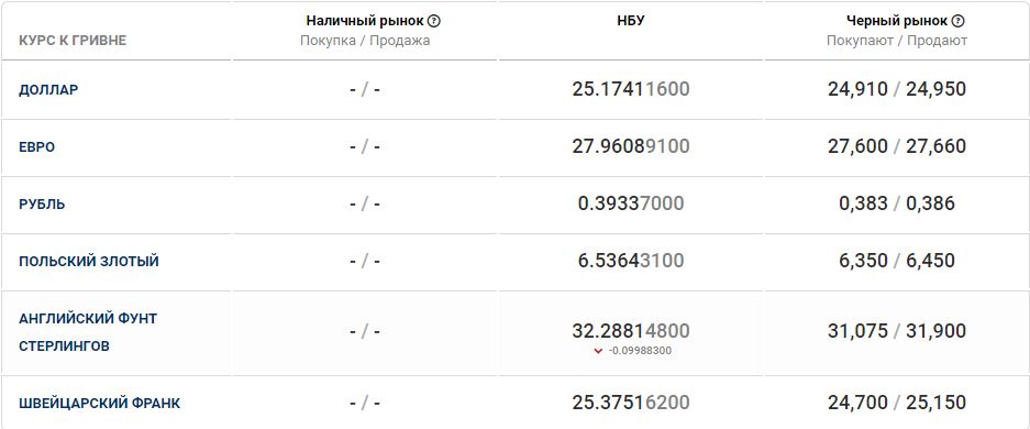 Тем временем «Минфин» сообщил о ценах на основные валюты на «черном рынке».