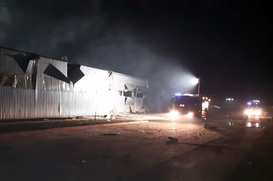 Как уточнили в областном управлении ГосЧС, общая площадь разрушения составила 4200 кв. метров: полностью разрушен склад, в помещении административно-бытового корпуса выбиты двери и окна.