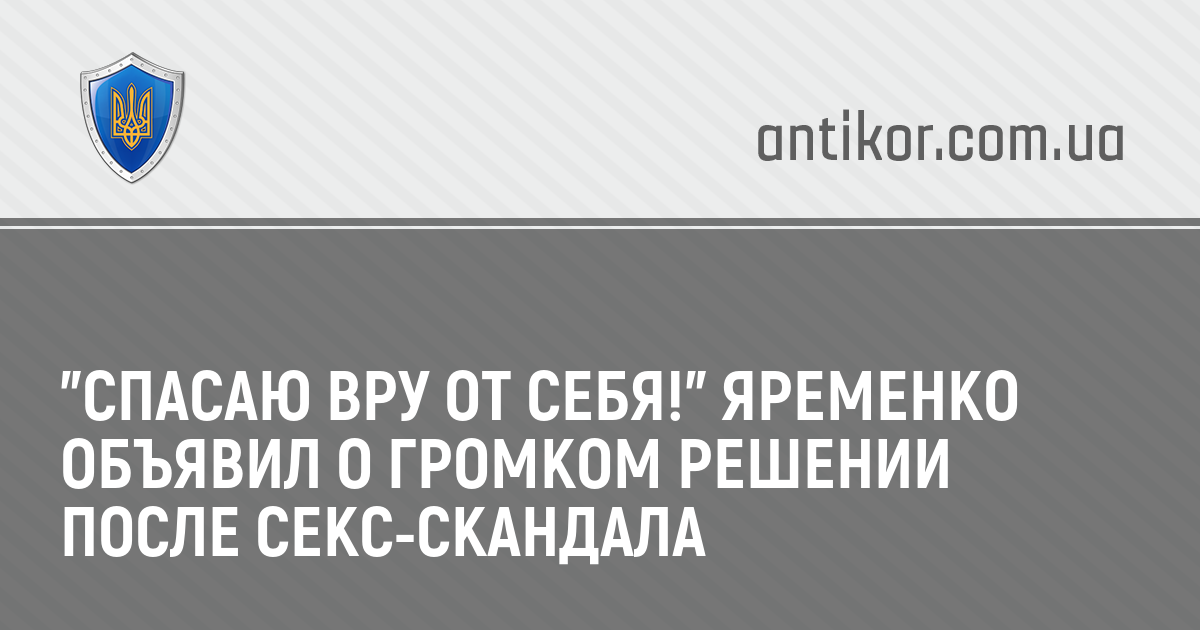 "Спасаю ВРУ от себя!" Яременко объявил о громком решении после секс-скандала