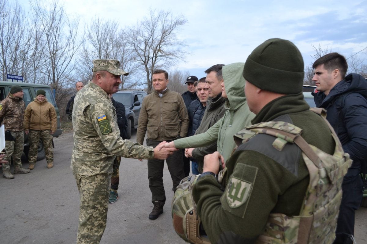 Пресс-служба штаба ООС сообщает, что в ходе визита в Золотое-4 нардепы побывали на участке разведения, увидели оборудованные позиции украинских военных и встретились с командующим Объединенных сил генерал-лейтенантом Владимиром Кравченко.