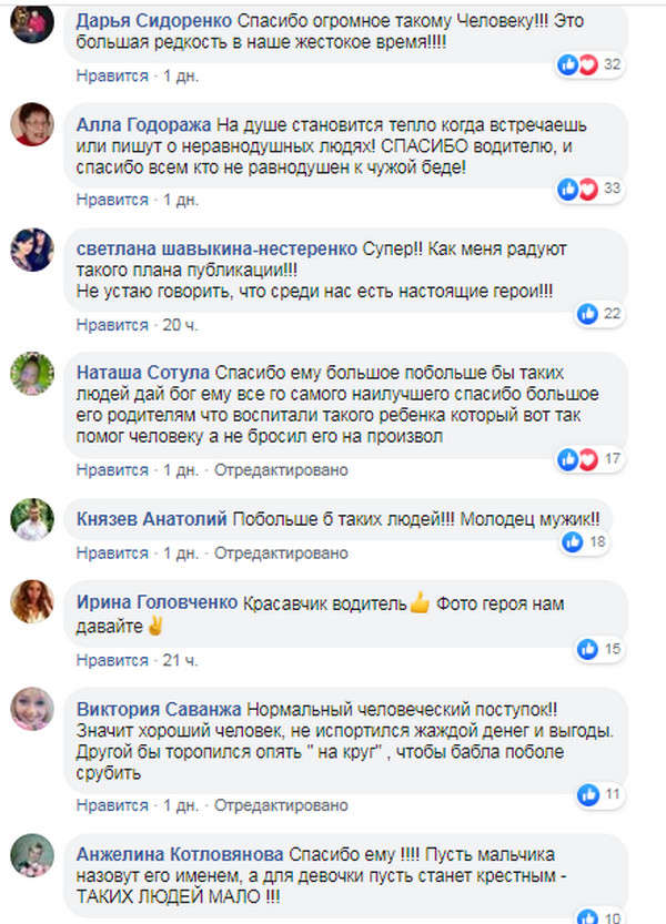 Под постом появились трогательные комментарии. Водителя называли настоящим мужчиной и человеком, который не погнался за деньгами, а помог слабой женщине.