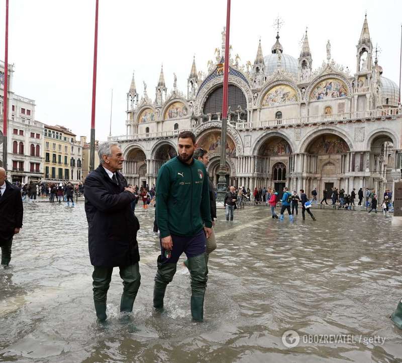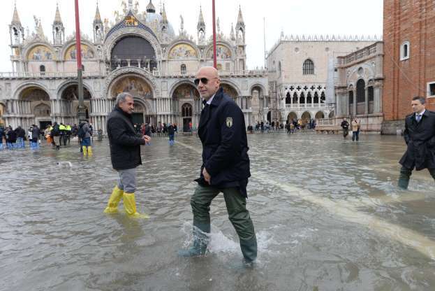 Премьер-министр Италии Джузеппе Конто, побывавший в затопленной Венеции, назвал наводнение ударом "в самое сердце страны".