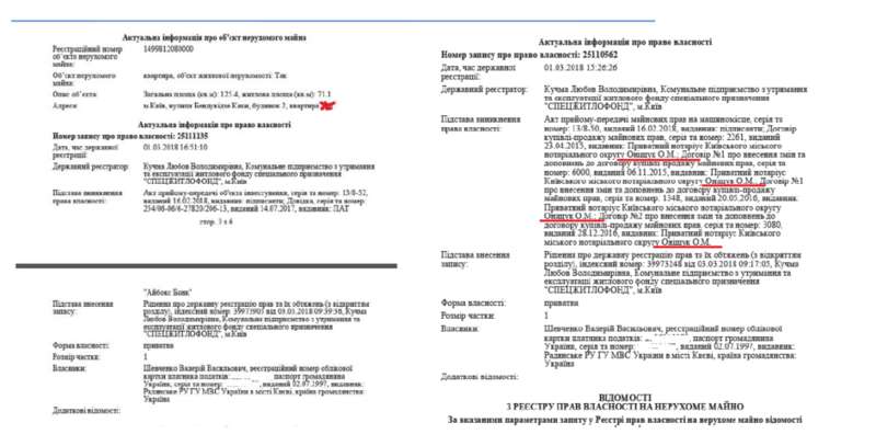 Якщо придивитися, можна помітити що підставою виникнення права власності на квартири та гаражі є договір купівлі-продажу від 2015 року майнових прав, виданий приватним нотаріусом Київського нотаріального округу Онищук Ольгою Миколаївною – кумою Олексія Валерійовича. Договору про внесення змін від 2016 роки так само підписані Ольгою Онищук, якій Олексій Валерійович довіряє безмежно.