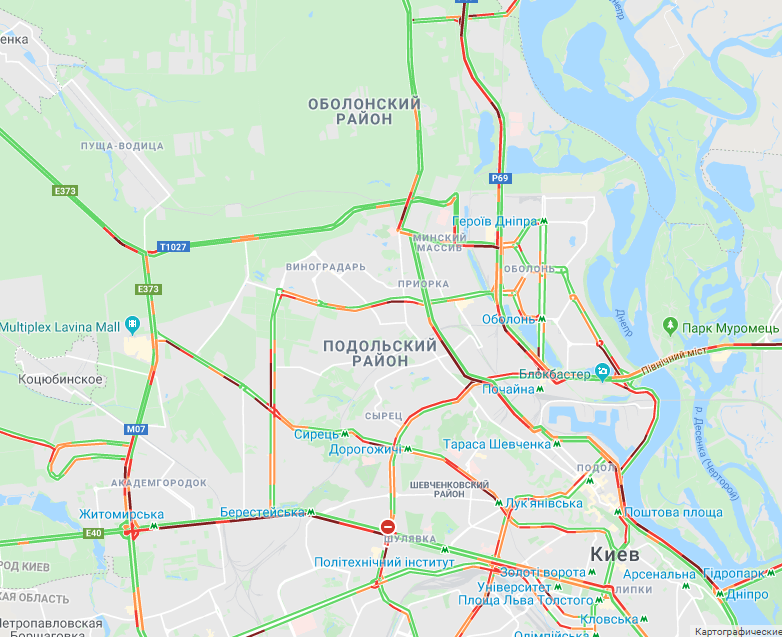 Тяжелее всего проехать с левого на правый берег по направлению к центру города. Движение авто на всех мостах затруднено: Южном, Дарницком, Патона и Северном.
