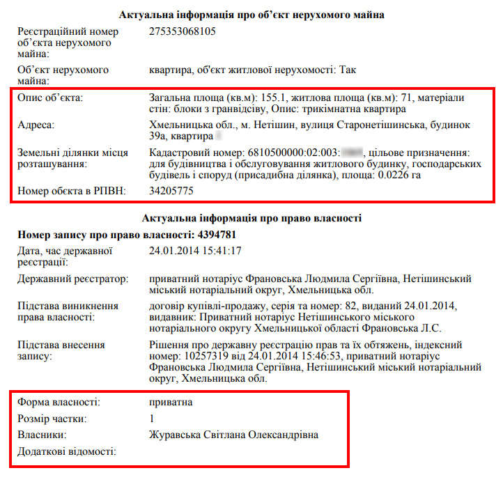 А вот мать Журавской - Светлана Александровна, оказалась довольно богатой женщиной, хотя не имела доходов, по сведениям Общественного совета добродетели. До недавнего времени она владела участком с домом в Киевской области, но, вероятно, его продала.